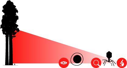 É fácil identificar os animais grandes, como as baleias, os elefantes e as girafas ou as árvores, mas a nossa percepção amplia-se ao usar lupas e microscópios. Com eles descobrimos a diversidade de escalas de tamanho dos seres vivos e todos os seus tipos de formas.